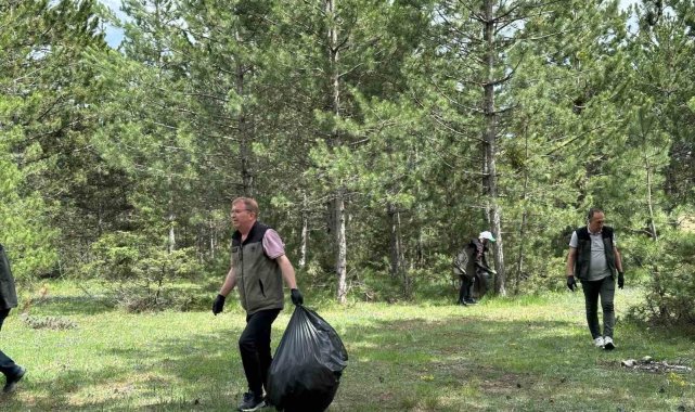 Kastamonu'da "Orman Benim" kampanyası çerçevesinde protokol üyeleri, vatandaşlar ve öğrenciler ormanlık alanlarda yangın riski oluşturabilecek çöpleri topladı.