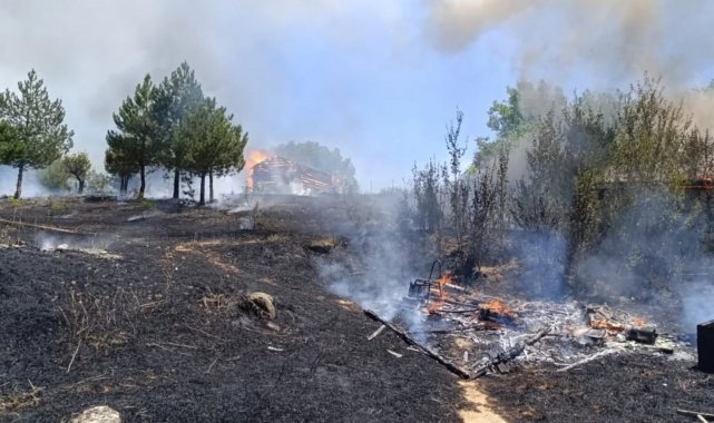 Kastamonu'nun Araç ilçesinde ormanlık alanda çıkan yangında samanlık, kümes ve baraka kullanılamaz hale geldi.