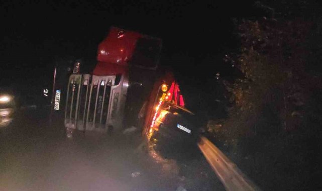 Kastamonu'da tır otomobilin üzerine devrildi: 2 yaralı