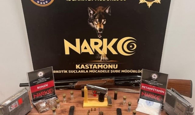 Edinilen bilgiye göre, Kastamonu İl Emniyet Müdürlüğü Narkotik Suçlarla Mücadele Şube Müdürlüğü ekiplerince yapılan çalışmalar neticesinde, tespiti yapılan bir iş yerinde arama yapıldı. Aramada 2 adet ruhsatsız av tüfeği, 11 adet kartuş ile iş yeri içinde bulunan araç parçaları içine gizlenmiş vaziyette 55,20 gram metamfetamin, 20,90 gram kannabinoid, 1 adet ruhsatsız tabanca ve 7 adet fişek ele geçirildi.