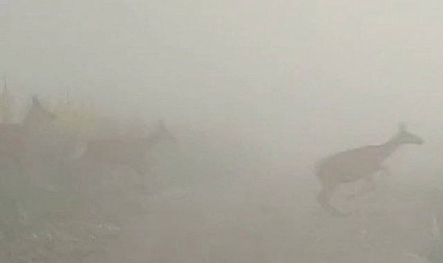 Kastamonu'da Ilgaz Dağı Milli Parkında görüntülenen tavşan ve geyik sürüsü renkli görüntüler oluşturdu.