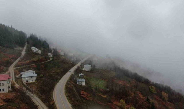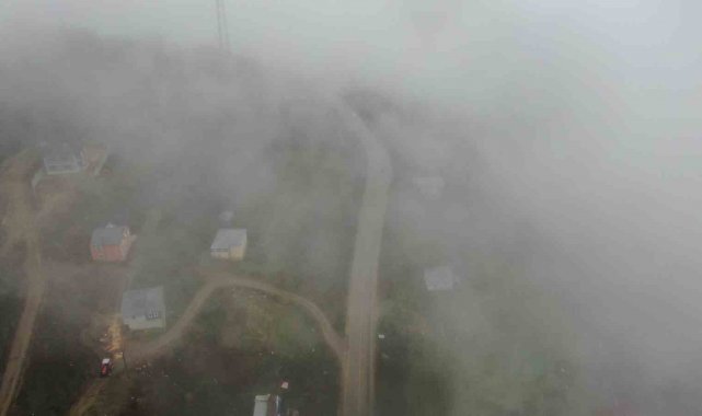 Sis nedeniyle sürücülerin zor anlar yaşadığı Yaralıgöz Dağı'nın sisle sunduğu manzara, dron ile görüntülendi.