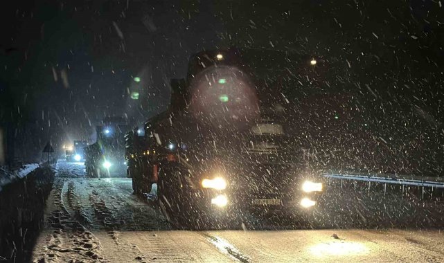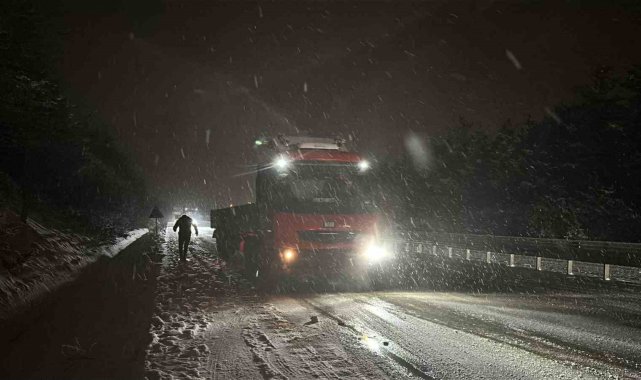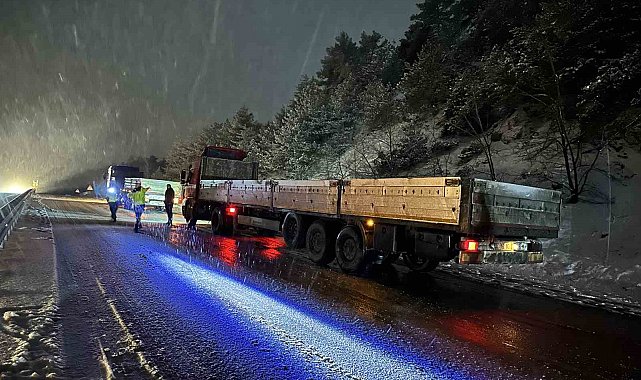 Jandarma trafik ekipleri de yolda mahsur kalan sürücülere yardımda bulunarak yoldaki ulaşımın aksamaması için seferber oldu.