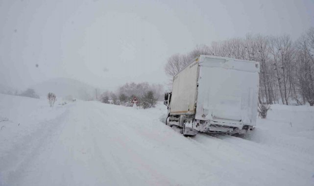 Kastamonu'da yoğun kar yağışı nedeniyle araçlar yolda mahsur kaldı