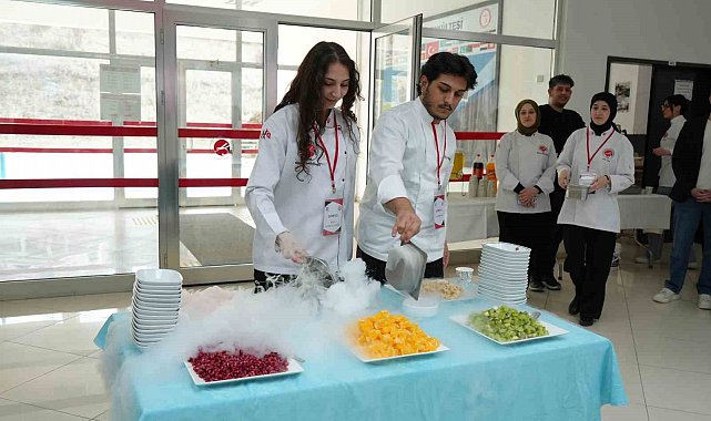Etkinlik kapsamında öğrenciler, gastronomi alanında hazırladıkları meyvelerle "ateş meyvesi" şovu yaparak hünerlerini sergiledi.