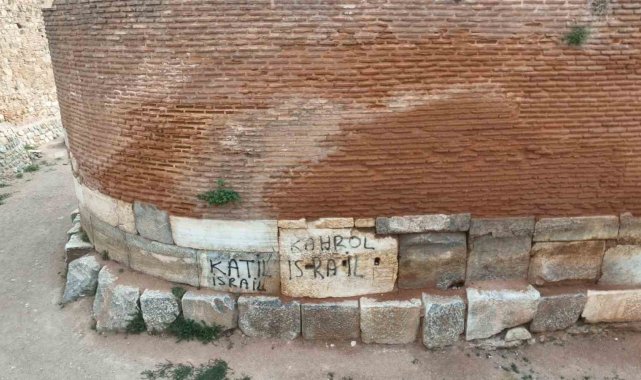 Bursa'nın İznik ilçesindeki 2400 yıllık surlara yazılan 'Katil İsrail' yazısı herkesi isyan ettirdi.