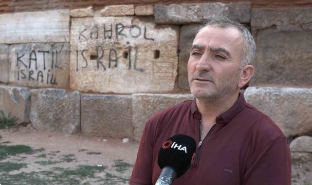 UNESCO Dünya Mirası Geçici Listesi'nde yer alan tarihi surların normal bir duvarmış gibi kullanılmasına anlam veremediklerini belirten Turizmci Bekir Uslu, "Bu duvarlar taşlar, kolonlar bizim tarihimiz. Yıllar yıllar öncesinde bizlere miras olarak kalmış. Biz bunları koruyup kollamalıyız. Katil İsrail'in tabi ki kahrolması lazım. Onları tabi ki protesto etmemiz gerekiyor. Ancak böyle asırlık duvarlara tarihimize yazarak değil. Onları alışverişlerimizle ve benzeri şeylerle onlara gereken cevabımızı verelim" dedi.