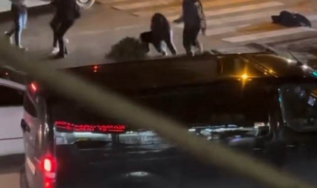 Kavga anları çevrede paniğe neden olurken, yaşanan tehlikeli anlar kameraya saniye saniye yansıdı.
