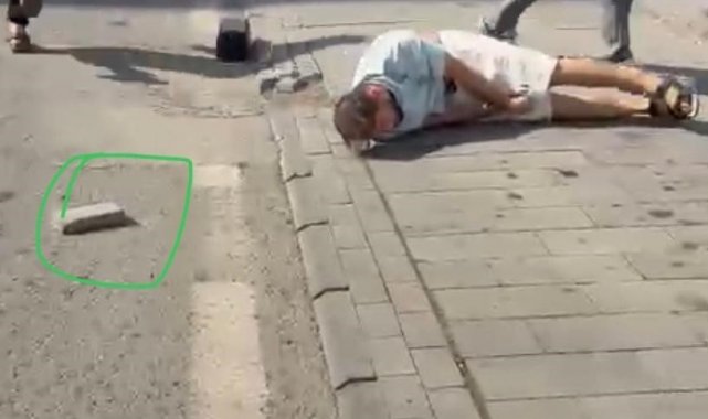 Kavga ettikleri şahsı taşla bayılttılar... Sokak ortasındaki kavga kamerada