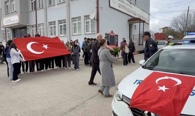Sakarya'nın Kaynarca ilçesinde lisede kavga olduğu ihbarında bulunan öğretmen ve öğrenciler, polis ekiplerini çiçek ve Türk bayraklarıyla karşıladı.