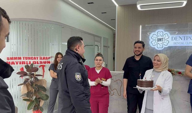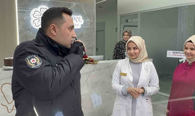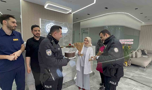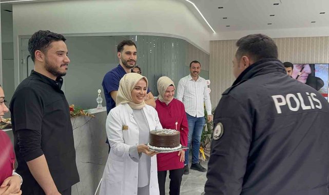 Türk Polis Teşkilatı'nın 181. Kuruluş Yıl dönümünü kutlamak için sürpriz yaptıklarını belirten Diş hekimi Demet Bozyiğit Yüksel, anlayışları için polislere teşekkür etti.