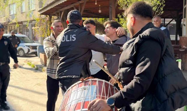 Edirne'de kavga ihbarına giden polis ekiplerine davul zurna eşliğimde karşılama yapıldı.