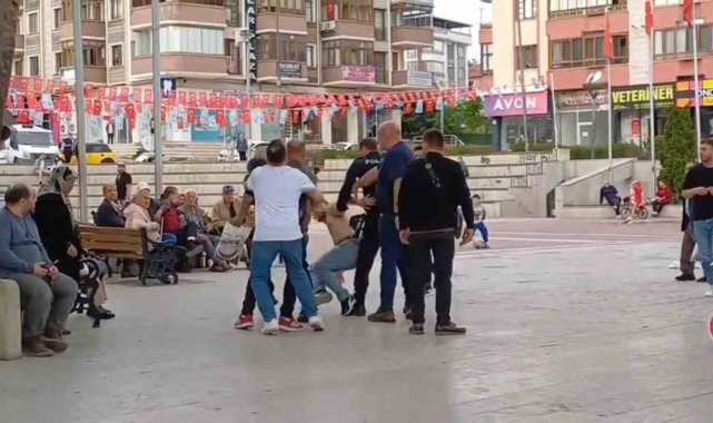 Olay, Misak-ı Milli Meydanında meydana geldi. İki kişi arasında henüz bilinmeyen bir nedenle kavga çıktı. Polis ekiplerinin araya girmesine rağmen karşısındakine saldırmaya çalışan şahıs yediği yumrukla yere yığıldı. Güçlükle kontrol altına alınan şahsın, polis ekiplerine yaşattığı zor anlar cep telefonu kamerası tarafından görüntülendi.