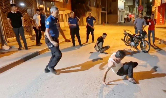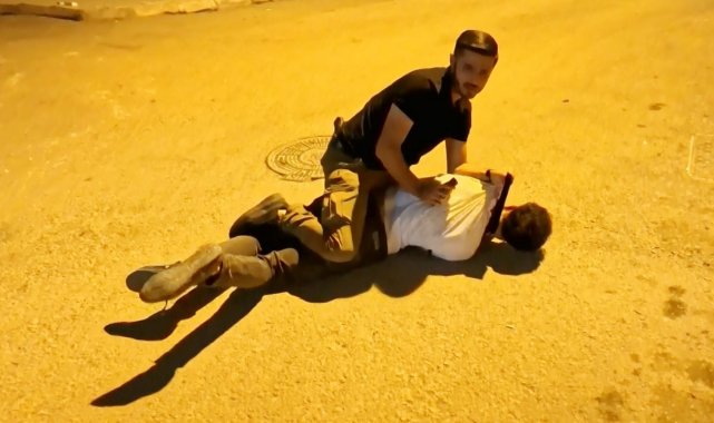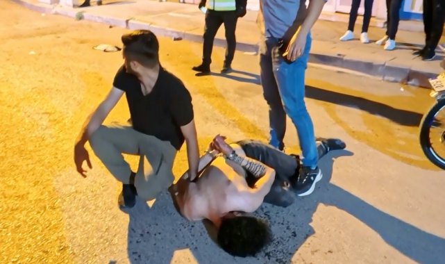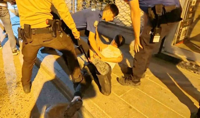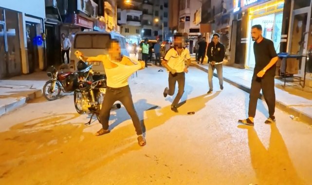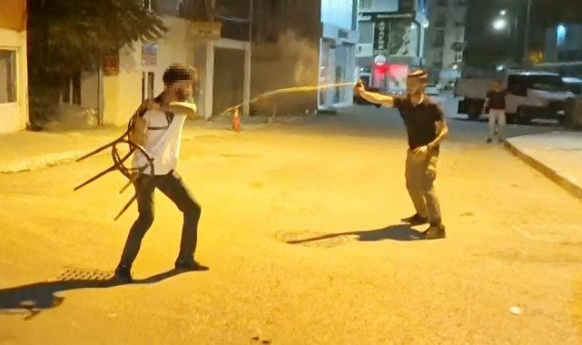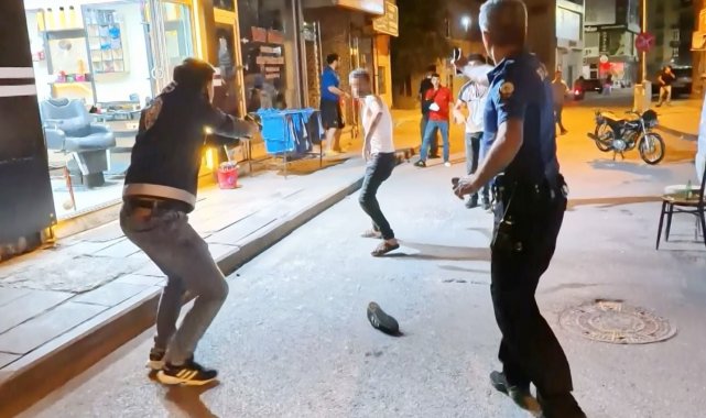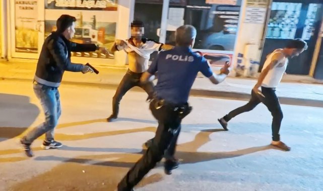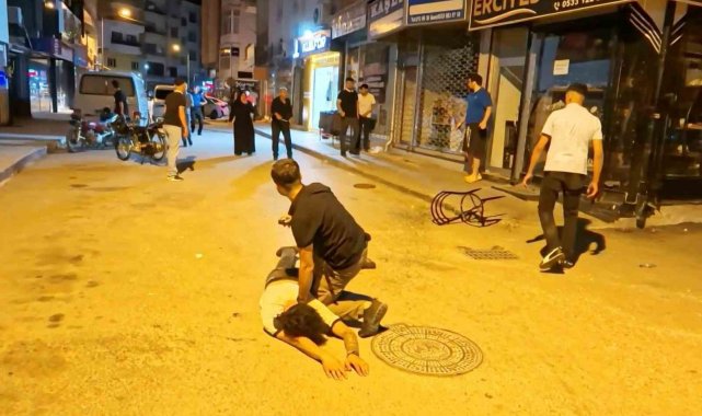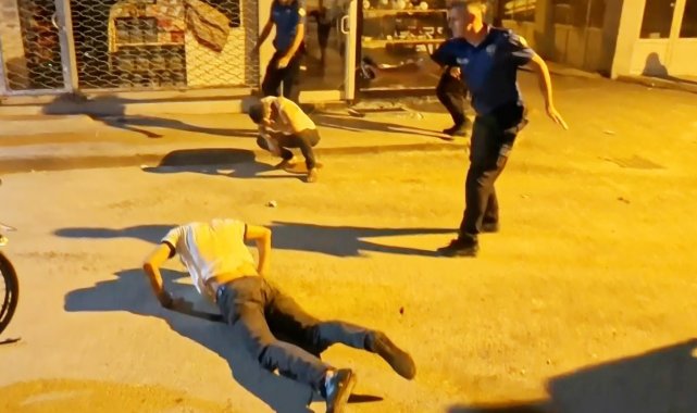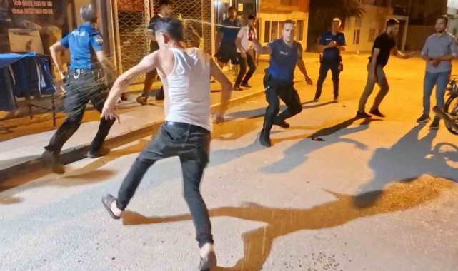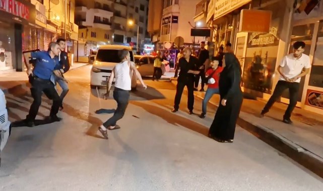 Olay, Muhsin Çelebi Mahallesi 600 sokakta yaşandı. Edinilen bilgiye göre, Mustafa A. (23) ve babası Ali A. (46) aynı sokakta oturdukları ve daha önceden husumetli oldukları Tuncer Ç. (48) ile oğlu Mustafa Samet Ç. (22) aralarındaki laf atma meselesi yüzünden tartıştı. Bir süre sonra tartışmanın dozu artarak olay kavgaya dönüşürken, taraflar sokak ortasında birbirine girdi. Kavga seslerini duyan mahalle sakinleri durumu 112 Acil Çağrı Merkezine bildirdi. İhbar üzerine olay yerine polis ve sağlık ekipleri sevk edildi. Kısa sürede adrese gelen bekçi ve polis ekipleri kavgaya müdahale edip ayırmak istedi. Tuncer Ç. ile oğlu Mustafa Samet Ç. polislerin müdahalesiyle durdurulurken, Ali A. ile oğlu Mustafa A. husumetlilerini bırakıp polis memurlarına saldırmaya başladı. Mustafa A. elindeki sandalye ile polis memurunun koluna vurup yaralarken, babası Ali A. ise elindeki bıçakla önce çevredeki vatandaşlara, sonra da polis memuruna saldırdı. Yüreklerin ağza geldiği o anlar anbean İhlas Haber Ajansı (İHA) kamerasına yansıdı. Polis ve bekçilerin biber gazı ile müdahale ettiği olayda elindeki bıçağı bir türlü bırakmayarak herkese saldıran baba Ali A., İHA muhabirinin üzerine de koşarak bıçakla saldırdı. Gözü dönmüş baba bir ara elindeki bıçağı polislerin üzerine fırlattı.