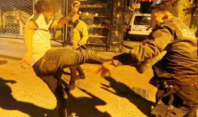 Bu sırada babasının yanına koşup gelen Mustafa A. polis memurlarına, "Babama vurursan sana düşmanlık güderim, seni bulurum" diye tehdit etti. Elindeki bıçakla yere düşen baba Ali A., yere düşmesine rağmen bıçağı bırakmamakta direnip polis memurlarına bıçak sallamaya devam etti. Polis memurları ve bekçiler şahıslara biber gazı sıkarak etkisiz hale getirmeye çalıştı. Ancak yere düşseler bile direnmeye devam eden baba oğul bıçak ve tekmelerle ekiplere saldırısını sürdürdü. Babasına biber gazı sıkılırken yanına gelen Mustafa A., burada polis memurlarına tekme atarak saldırdı. Biber gazı ile düşürülen baba ve oğul kelepçelenerek etkisiz hale getirildi. Kolundan sandalye vurularak yaralanan ve tekme ve yumrukla bacağından ve ayağından yaralanan 2 polis memuruna ilk müdahale meslektaşları tarafından yapıldı. Etkisiz hale getirilen baba ve oğlu olay yerine gelen ambulansla Aksaray Eğitim ve Araştırma Hastanesi Acil Servisine kaldırıldı. Polis memurları ise ekip otolarıyla hastaneye götürülerek tedavi altına alınırken, kolundan sandalyeyle yaralanan polis memurunun kolu alçıya alındı. Olayla ilgili Mustafa A. ve babası Ali A. ile karşı taraf olan Mustafa Samet Ç. (22), Y.Ç. (16), M.A.K. (17), B.Ş. (17) ve Tuncer Ç. (48) olmak üzere toplam 7 kişi gözaltına alındı.