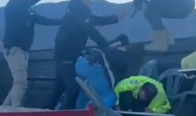 Aydın'ın Bozdoğan ilçesinde deve güreşi festivalinde çıkan kavgayı ayırmaya çalışan trafik polisine saldıran şüpheli O.Ç., jandarma ekiplerince gözaltına alındı.