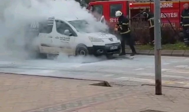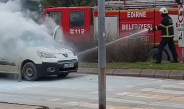 Edirne merkez Zübeyde Hanım Caddesi Trakya Birlik kavşağı'nda sabah saatlerinde seyir halindeki bir otomobilin motor kısmında yangın çıktı. Kısa sürede yükselen alevler ve yoğun duman çevrede paniğe sebep oldu.