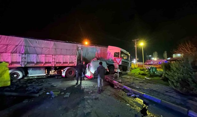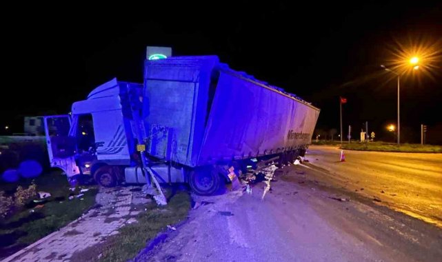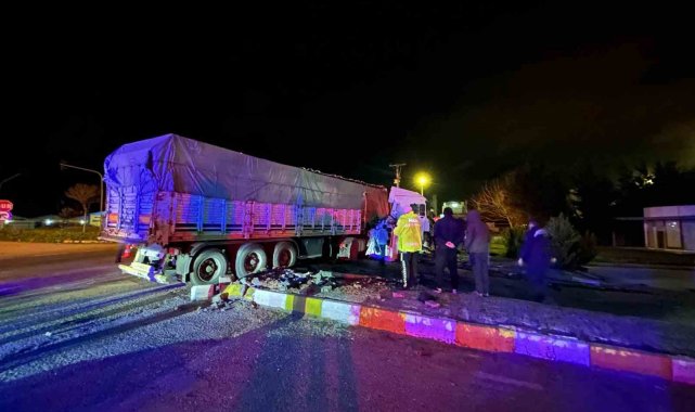 Kavşakta çarpışan tırların sürücüleri yaralandı
