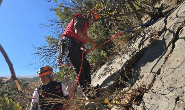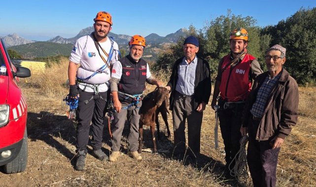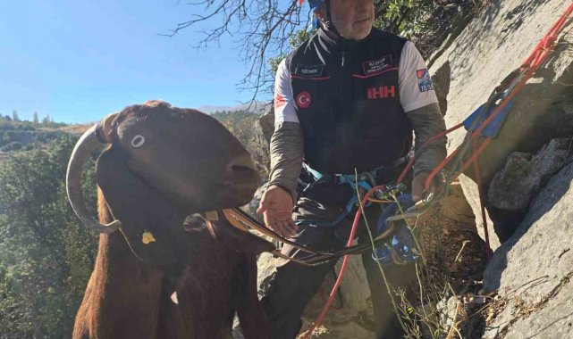 Antalya'nın Korkuteli ilçesinde kaya oyuğunda 3 gündür mahsur kalan keçi, arama kurtarma ekipleri tarafından film gibi operasyonla bulunduğu yerden çıkartılarak sahibine teslim edildi.