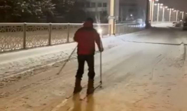 Elazığ'da etkili olan kar yağışı sonrasında bir vatandaş, kayak takımlarını alarak karda kaydı. O anları kayda aldıran vatandaş, daha sonra görüntüleri sosyal medya hesabından paylaştı. Görüntüler kısa sürede büyük beğeni topladı.