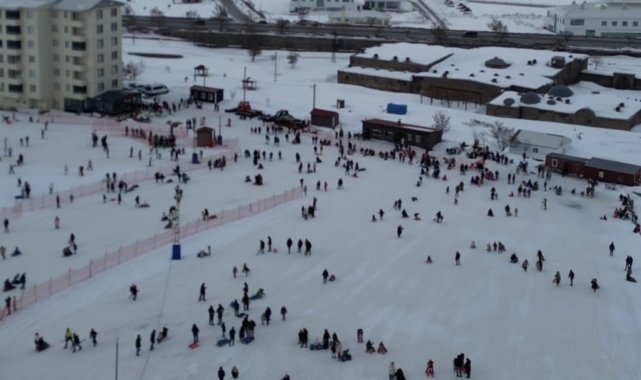Kente merkezindeki El Aman Kayak Merkezi'nde kar yağışının ardından oluşan elverişli pist şartları; kayak, kızak ve snowboard tutkunlarını merkeze çekti. Aileleriyle birlikte gelen ziyaretçiler, hem kayak yaptı hem de kış manzarasının keyfini çıkardı. Kayak pistlerinde yaşanan yoğunluk havadan görüntülenirken, ortaya renkli ve hareketli görüntüler çıktı.