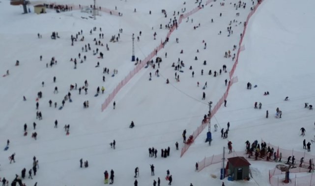 Kayak tesislerindeki yoğunluk havadan görüntülendi
