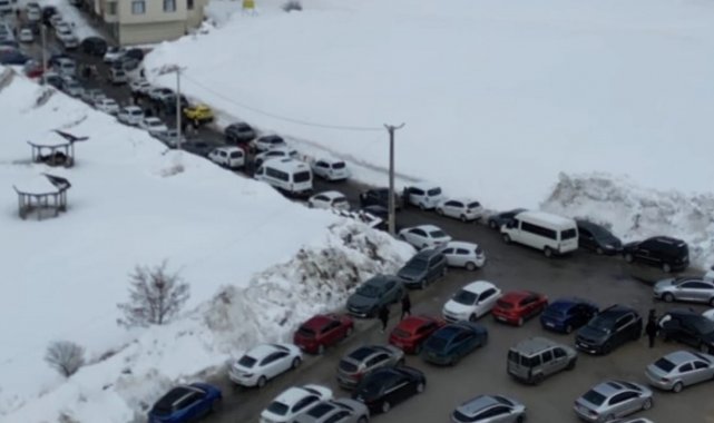 Bitlis'in kış turizminde önemli adreslerinden biri olan El Aman Kayak Merkezi'ndeki yoğunluk havadan görüntülendi.