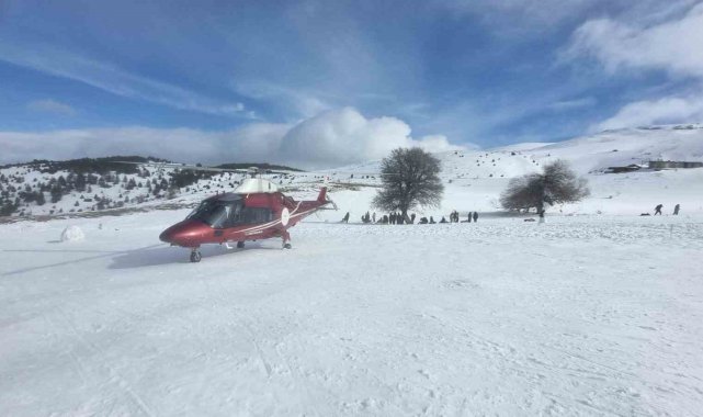 Kayakta düşerek ayağını kıran genç hava ambulansıyla hastaneye kaldırıldı