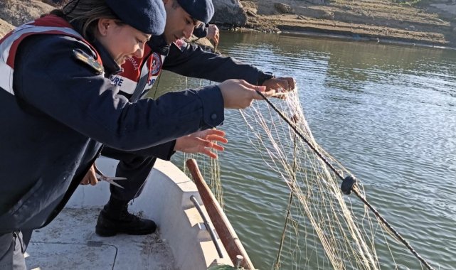 Kırklareli merkez ilçe sınırındaki Kayalı Barajı'nda, Jandarma Çevre Koruma Timi (HAYDİ) ve İl Tarım ve Orman İl Müdürlüğü teknik personelleri iş birliğinde, sazangiller av yasağı döneminde yaptıkları ortak denetimlerde, kaçak ağlara el konuldu. Ağlara takılan balıklar ise suya salındı.