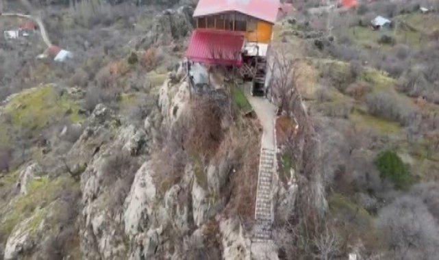 Kayalığa yapılan ev görenleri şaşırtıyor; 96 basamakla çıkılıyor