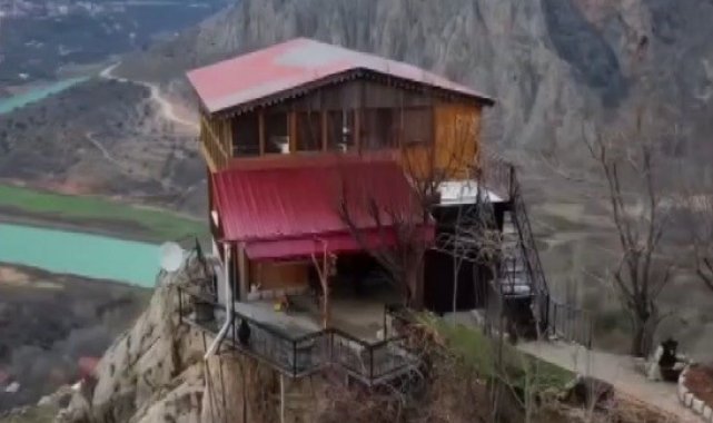 Kemaliye ilçesinde, emekli öğretmen Nermin Taştan'ın hayalini gerçekleştirmek için eşi ile bir kayalığın zirvesine yaptığı ev, şehrin sembollerinden biri haline geldi.