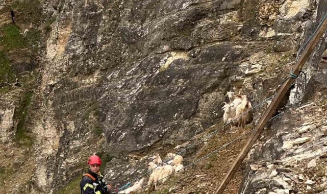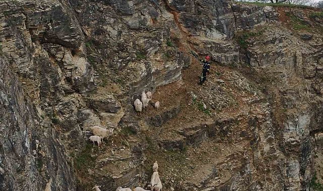 Bölgeye hızla ulaşan itfaiye ekipleri, yağışlı hava ve ıslak zemin nedeniyle kayganlaşan tehlikeli arazide adeta cansiparane kurtarma çalışması başlattı. Metrelerce yükseklikteki kayalıklara özel halat sistemleri kurarak inen itfaiye erleri, zorlu hava ve fiziki şartlara rağmen titiz bir operasyon yürüttü. Ekiplerin zorlu arazi şartlarıyla mücadelesi yaklaşık 3 saat sürdü. Başarıyla tamamlanan operasyon sonucunda, kayalıklarda mahsur kalan 16 keçi ve oğlak burunları dahi kanamadan kurtarılarak sahibine sağ salim teslim edildi.