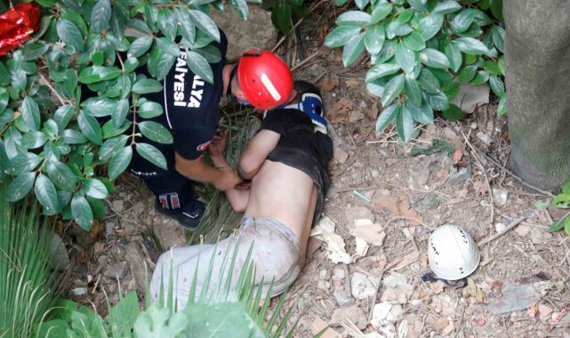 Verilen adrese gelen ekipler isminin Ömür H. Y. (27) olduğu öğrenilen genci kurtarmak için çalışma başlattı. Bu sırada bazı vatandaşlar ekiplerin kurtarma çalışmasını meraklı gözlerle takip etti. İlk olarak gencin yanına inen ekipler güvenli noktaya aldıktan sonra ilk müdahaleyi yaptı. İpli kurtarma düzeneği hazırlayan ekipler Ömür H. Y.'yi basket sedyeye koyarak bulunduğu yerden çıkardı. Yaklaşık 1 saatlik kurtarma çalışmasının ardından ambulansa alınan ve vücudunun farklı yerlerinde yaralar olduğu görülen Ömür H.Y., tedavi edilmek üzere Antalya Eğitim ve Araştırma hastanesine kaldırıldı.