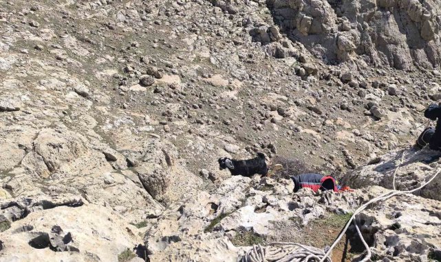 Kayalıkta mahsur kalan 17 oğlak kurtarıldı