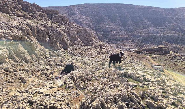 Mardin'in Midyat ilçesinde dağlık arazideki kayalıklarda mahsur kalan 17 oğlak itfaiye ekipleri tarafından kurtarıldı.