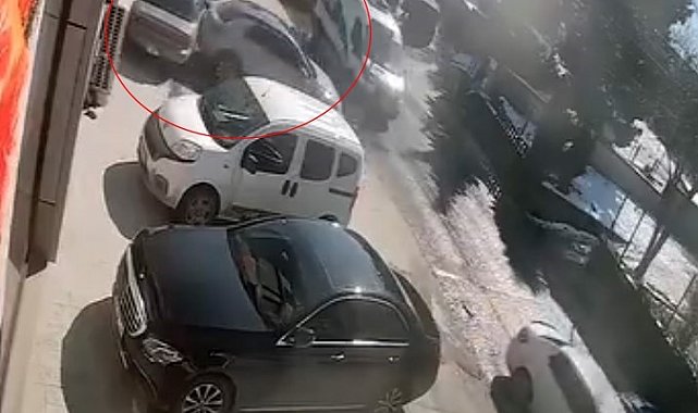 Kayan araç park halindeki otomobillere çarptı: O anlar kamerada