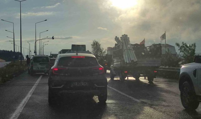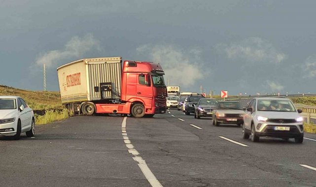 Kayan tır yolu kapattı: 4 kilometrelik kuyruk oluştu