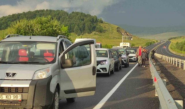 Ardahan'da sağanak yağış hayatı olumsuz etkiledi. Sağanakla birlikte kayganlaşan yolda bir tırın kayması sonucu meydana gelen kaza nedeniyle yol kapanırken, yaklaşık 4 kilometrelik araç kuyruğu oluştu.