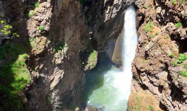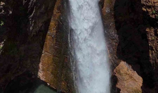 Bingöl'ün Solhan ilçesinde kayayı oyarak süzülen doğa harikası şelale, görenleri kendine hayran bırakıyor.