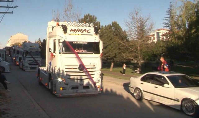 Kaybettiği ağabeyinin oğluna 15 tır ile düğün konvoyu yaptı