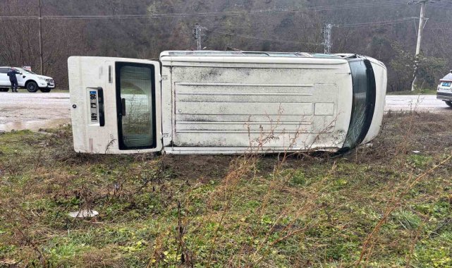 Bolu'da yağışlı havada kontrolden çıkan bir minibüs, yol kenarına devrildi. Meydana gelen kazada 2 kişi yaralandı.