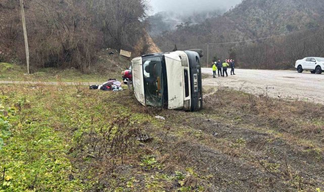 Kaygan yolda kontrolden çıkan minibüs devrildi: 2 yaralı