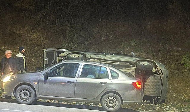 Adıyaman'da kayganlaşan yolda kontrolden çıkan bir otomobil şarampole devrildi.