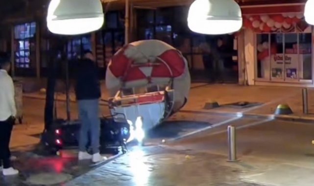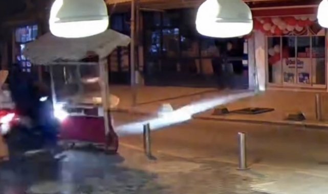 Üçüncü kaza ise Düzce şehir merkezinde meydana geldi. Sürücüsü ve plakası alınamayan motosiklet Şerefiye Mahallesi Süleyman Kuyumcu Caddesi üzerinde seyir halindeyken simit tezgahına çarptı. Maddi hasar ile atlatılan kaza çevredeki güvenlik kamerasına anbean yansıdı.