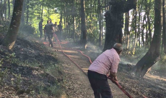 Düzce'nin Çilimli ilçesinde akşam saatlerinde başlayan orman yangınında 10 dönümlük kayın ve gürgen ormanı alevlere teslim oldu. İtfaiye ve Orman işletme şefliği ekiplerinin müdahalesiyle yangın kontrol altına alındı.