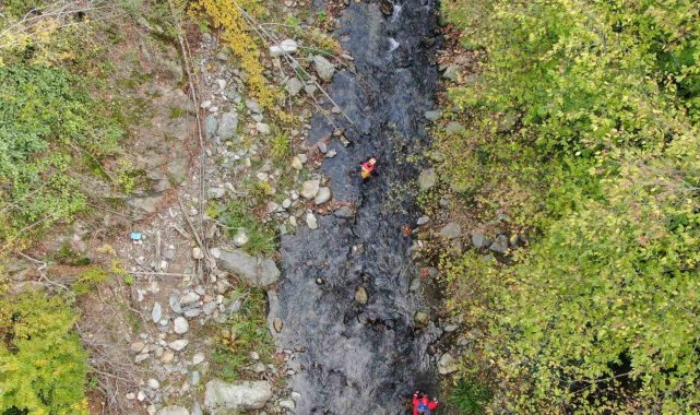 70 kilometrelik bir alanda sürdürülen çalışmalar kapsamında, ekipler İlişli Çayında arama çalışması başlattı. Ekipler çay içerisinde güçlükle ilerleyerek anne ve oğlunu arıyor.