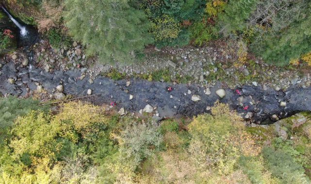 Kastamonu'nun Bozkurt ilçesinde kaybolan anne ile 5 yaşındaki oğlunu arama çalışmaları İlişli Çayında sürdürülüyor.