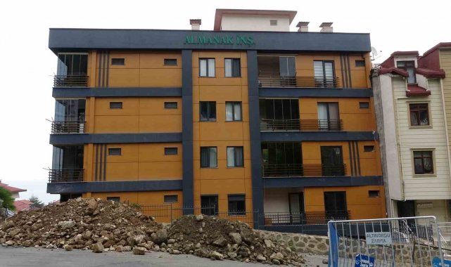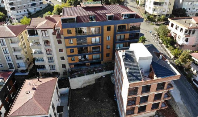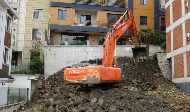 Ordu'da, temel kazısı sonrasında zeminindeki kayma nedeniyle çatlaklar oluşan ve yana eğilen binada yıkım için hazırlık çalışması başlatıldı.