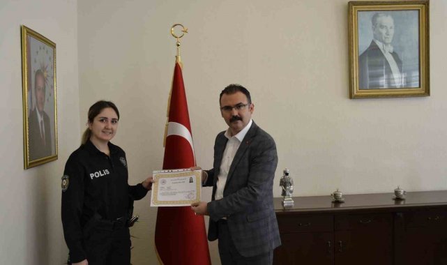 Başarı belgesi alan polis memurları da Kaymakam Ateş'e teşekkür ederek, vatandaşların huzuru için görevlerini aynı kararlılıkla sürdüreceklerini ifade etti.