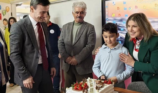 Dikili Kaymakamı Cevat Gün, Bademli Mehmet Ertuğrul Denizolgun İlkokulu öğrencisi Murat Çevik için düzenlenen sürpriz doğum günü programına katılarak anlamlı bir sürprize imza attı.